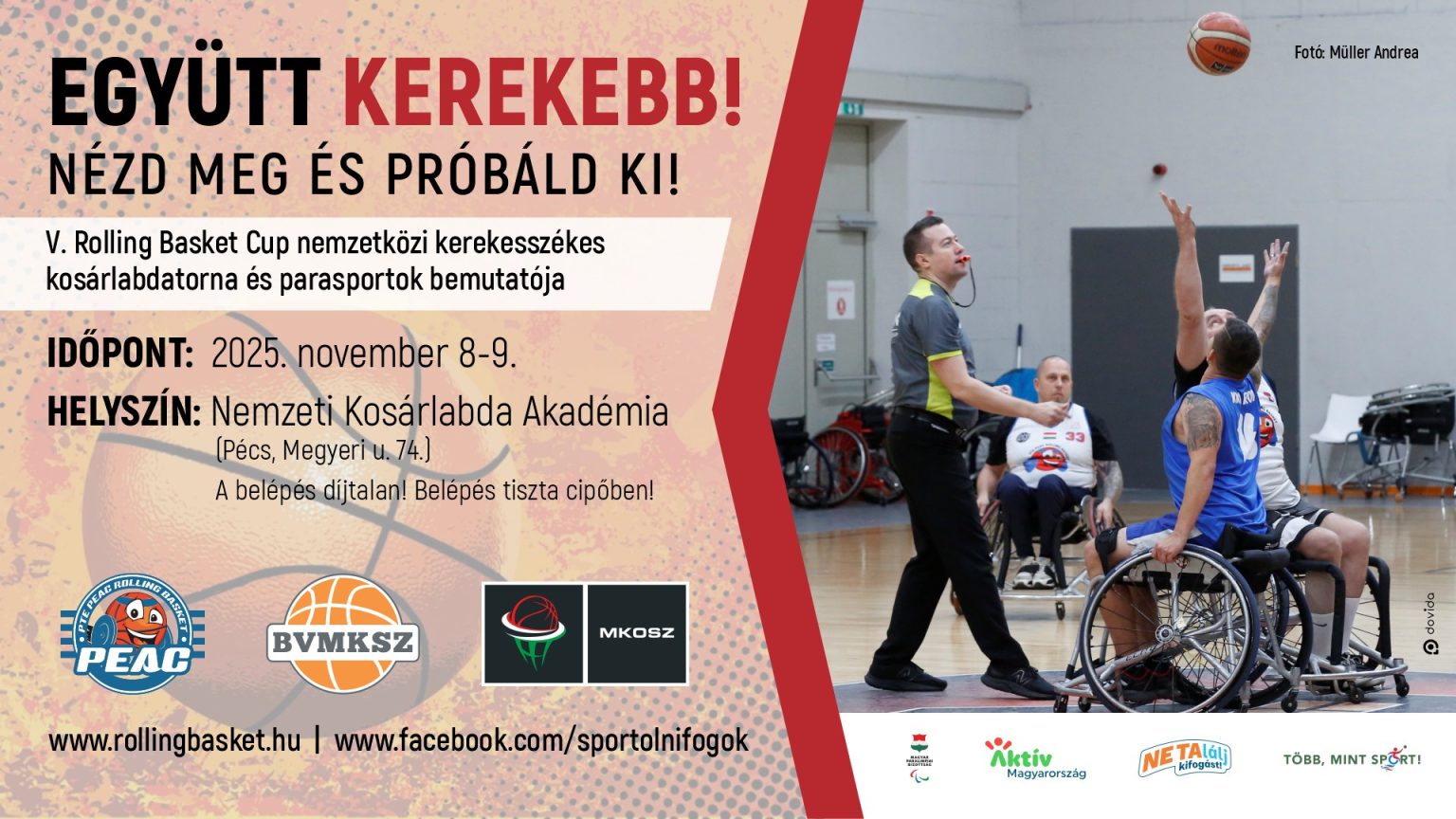 A Baranya Vármegyei Kosárlabda Szövetség és a PTE PEAC Rolling Basket idén is megszervezi immár hagyományos V. Rolling Basket Cup nemzetközi kerekesszékes kosárlabda tornát, melynek felvezető programjaként egy játékos érzékenyítő vetélkedő keretében bemutatásra, illetve kipróbálásra kerülnek a Pécsett űzhető egyéb parasportok is. A főszervezők az érzékenyítő programra sok szeretettel várják az egyetemi polgárokat, valamint családtagjaikat is. A játékos vetélkedőre épek és fogyatékkal élők egyaránt nevezhetnek csapatban (3 fős alakulattal).