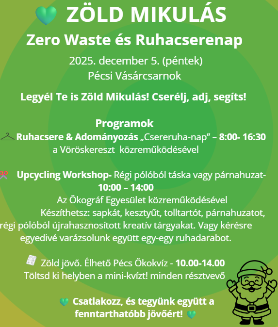 A Zöld Mikulás Nap célja, hogy közösen tegyünk a hulladékcsökkentésért, az újrahasznosításért és a fenntarthatóbb jövőért!