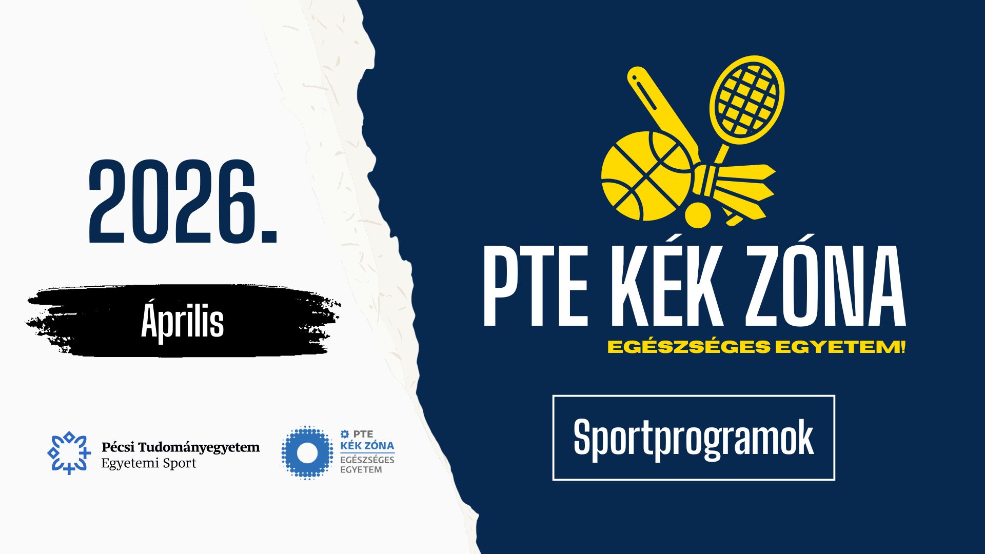 Az Egészséges Egyetem szemlélettel összhangban áprilisban is változatos mozgásprogramokkal várjuk a hallgatókat! Csatlakozz a PTE Kék Zóna közösséghez, és találj rá a számodra legjobb feltöltődési formára. Az alkalmak ingyenesen látogathatók, de minden esetben regisztrációhoz kötöttek. A további részletekhez és a regisztrációhoz kattints az aktuális linkekre.
