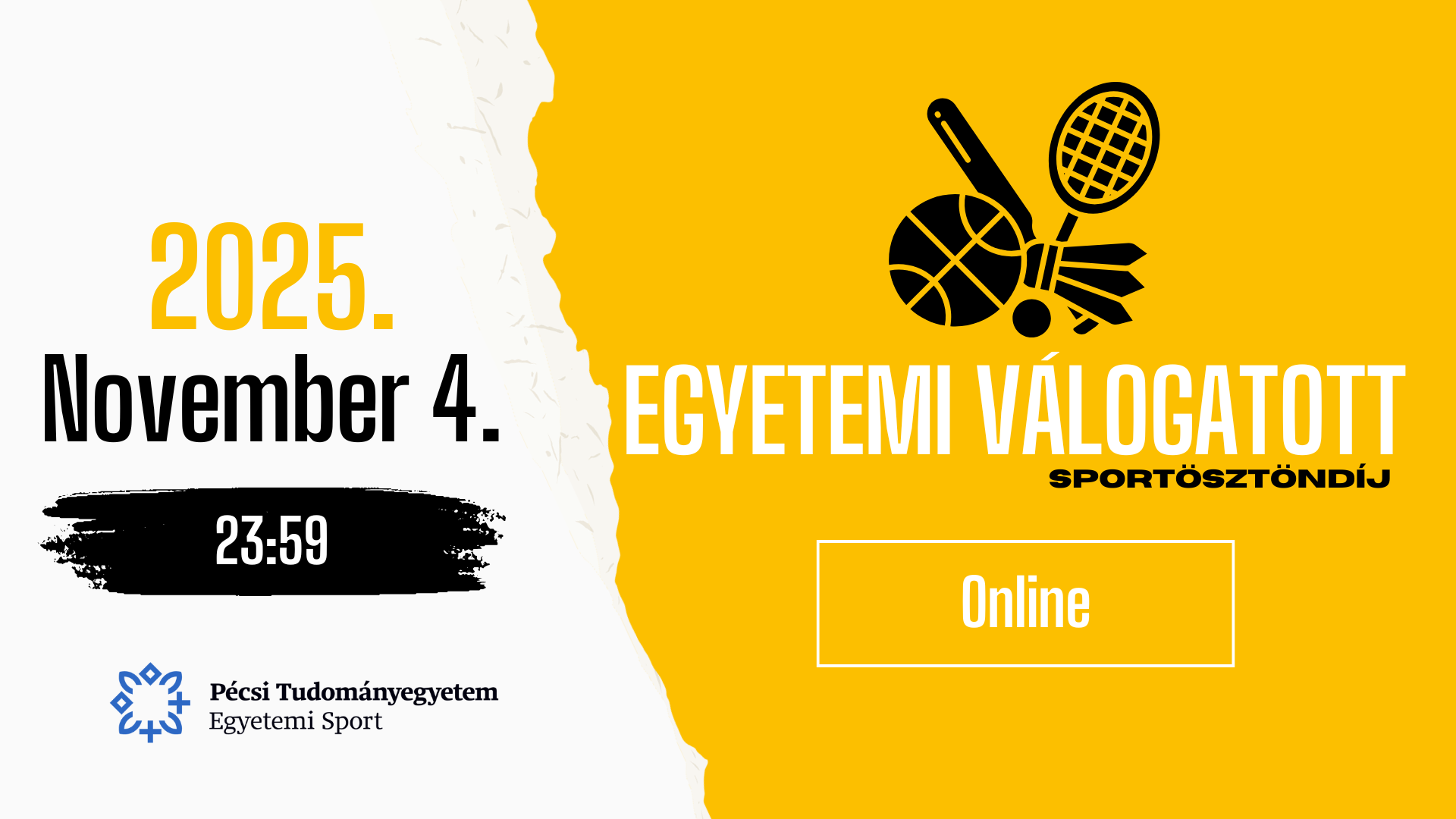 A Pécsi Tudományegyetem pályázatot hirdet az Egyetemi Sport Válogatott Ösztöndíjra (továbbiakban: ösztöndíjprogram), amelynek célja, hogy elismerje és jutalmazza azon hallgatók teljesítményét, akik a Pécsi Tudományegyetem képviseletében az EUSA (Európai Egyetemi Sportszövetség) és FISU (Nemzetközi Egyetemi Sportszövetség) versenyein eredményesen szerepeltek. A program célja továbbá a hallgatók ösztönzése a nemzetközi versenysportban való részvételre, valamint az egyetemi sport nemzetközi szintű láthatóságának növelése.