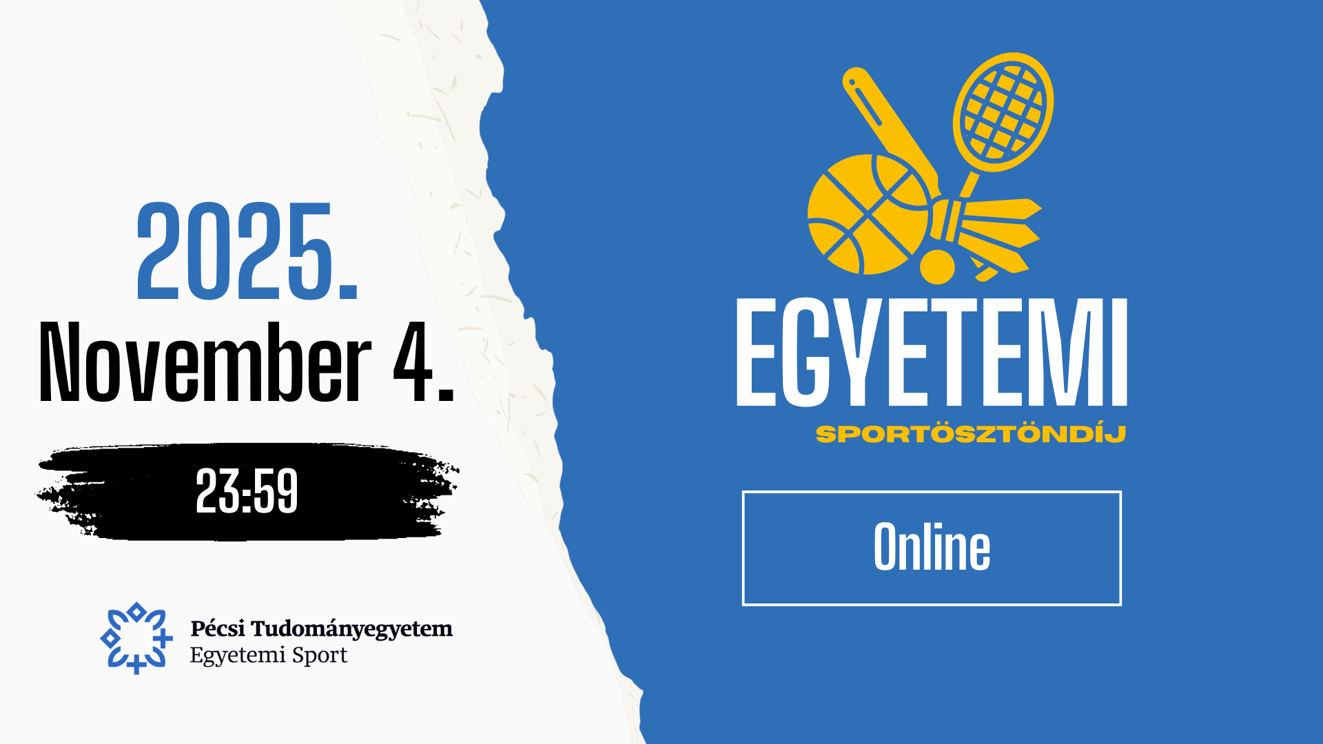 A Pécsi Tudományegyetem (továbbiakban: PTE) a 2025/2026-os tanév őszi szemeszterére pályázatot ír ki várhatóan 15 millió forint keretösszegben a Sport és Parasport Ösztöndíjának (továbbiakban: sportösztöndíj) elnyerésére. A sportösztöndíj célja, hogy támogatást nyújtson azoknak a hallgatóknak, akik tanulmányi kötelezettségeiken túlmenően rendszeresen részt vállalnak a PTE sportéletében, valamint elismerje a sportban végzett munkájukat és elért eredményeiket.